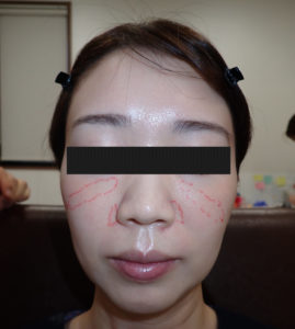 実際にヒアルロン酸を入れるところへマーキングしていきます。